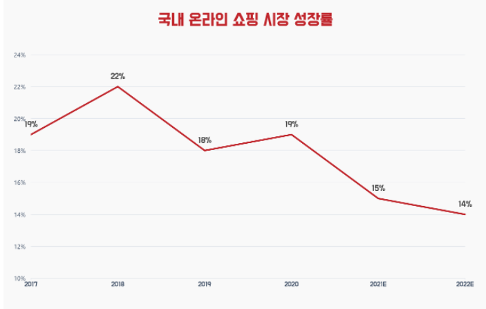온라인 쇼핑 시장의 성장 둔화는 현실로 다가오고 있습니다 (데이터 출처: 통계청, 한국 온라인 쇼핑협회)
