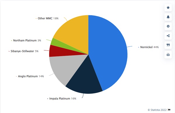 그러나 러시아와 우크라이나 전역으로부터 상당한 수준으로 공급되던 팔라듐과 네온 가스 교역 중단은 아프리카와 같은 안정적인 지역에서 팔라듐을 채굴중인 앵글로 아메리칸 플래티넘, 시바니예 스틸워터, 임팔라 플래티넘, 노르탬 플래티넘과 같은 채굴업체의 주가를 오르게 할 것으로 보인다.