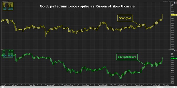 러의 우크라 침공으로 공급망 파괴된 팔라듐가격 치솟아