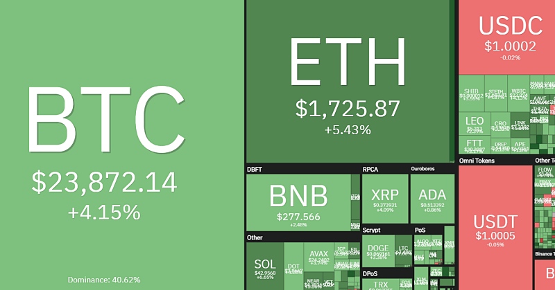 이밖에도 바이낸스코인(BNB)은 2.48% 상승한 277달러, 솔라나(SOL)는 6.65%나 급등한 42.95달러, 리플(XRP)은 4.09% 오른 0.37달러, 에이다(ADA)도 0.86% 올라 0.51달러에 거래됐다.
