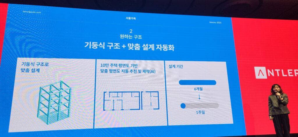 서울가옥이 택한 건축 방식은 플랫폼을 통해 10만건 이상의 주택 평면도 데이터를 활용, 고객 니즈에 맞는 평면도를 자동으로 추천하며 진행된다. 이후 노동 의존도가 높은 철근 콘크리트 구조 대신 내력벽이 없는 기둥식 구조로 건축을 진행한다. 김 대표는 “공장 자동화가 가능한 철골 구조”라며 말을 이어갔다.