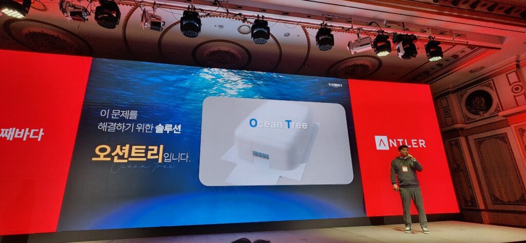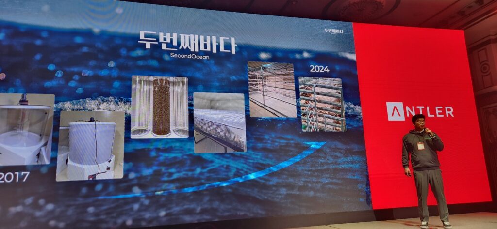 앤틀러코리아 제너레이터 프로그램 4기 팀 중 하나인 ‘두번째바다’는 발상의 전환을 통해 바다가 아닌 육지에서 해조류를 양식하는 기술을 선보였다. 이날 발표에 나선 문경현 두번째바다 대표는 “지구 온난화로 인해 겨울이 따듯해지며 김 양식 기간이 점점 짧아지고 있다”고 운을 뗐다.