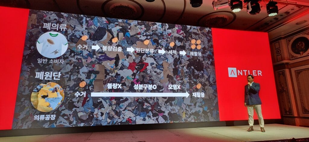 크래용 정래준 대표는 미국, 유럽, 아시아 등 글로벌 사업개발을 한 비즈니스 전문가로 건축자재 유통에 대한 지식과 네크워크를 보유하고 있다. 이선영 공동창업자는 국내외에서 15년 이상 의류제조업계에 종사하며 원단 R&D 경험을 보유하고 있다. 이날 발표에 나선 정래준 크래용 대표는 “폐원단을 화학적 업사이클링을 통해 방염성과 내구성이 개선된 건축자재로 만들었다”며 운을 뗐다.