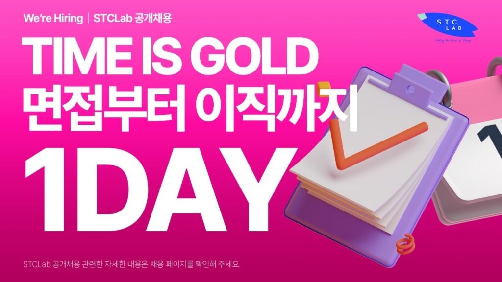 전형 절차는 서류 전형 이후 원데이(1Day) 실무 인터뷰로 진행된다. 면접부터 채용까지 보통 2주에서 한 달이 걸리는 일반적인 채용 방식과 달리, 이번 에스티씨랩 공채는 지원자들 편의를 고려해 하루에 면접 전형을 마무리할 수 있는 빠른 채용을 원칙으로 한다. 또 최대 1억원 상당의 스톡옵션 지급, 입사 축하금 포함 350만원 지원금, 면접 키트 제공 등 다양한 채용 프로그램을 운영하고 있다.