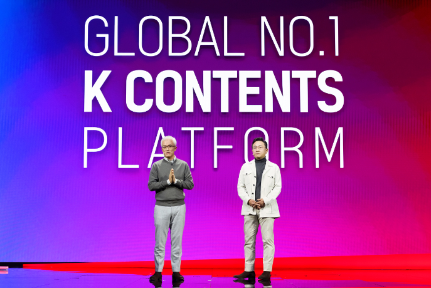 18일 열린 '티빙 커넥트 2021'에서 양지을(좌), 이명한 티빙 공동 대표는 글로벌 진출 사실과 함께 네이버, 삼성전자 등과의 협업을 통한 이용자 수 확대 전략을 설명했다. (사진=티빙)