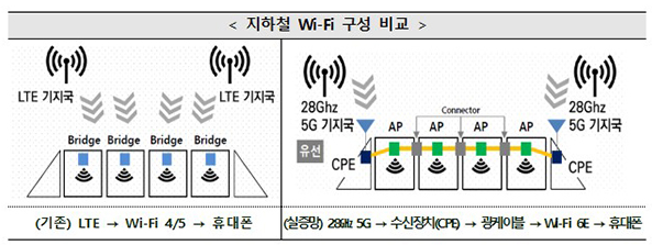 통신 3사는 지난해 지하철 2호선 성수지선에 5G 28㎓를 활용한 지하철 Wi-Fi 성능개선 실증을 성공적으로 마무리하고, 실증결과를 서울 지하철 본선(2·5∼8호선)으로 확대·구축 중이다.
