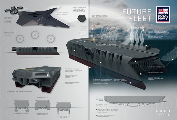 닉 하인 영국 해군 부제독은 애플의 광고 문구로 너무나도 유명한 메시지를 인용하며 영국 해군 미래함선 비전이 나온 배경을 설명했다. 그는 “미래의 전쟁 시나리오에서 전통적 물량 조건으로 경쟁할 수 없다면 작전 상의 이점을 되찾기 위해 ‘다르게 생각’해야 한다”고 말했다. 또 “이 프로젝트에서 일한 젊은 기술자들은 급진적이고 실질적인 상상력으로 생각하고 있으며 이는 영국 해군이 어떻게 생각하고 있는지도 그대로 반영한다”고 덧붙였다.