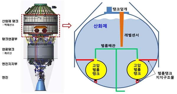 과기정통부와 항우연은 누리호 1차 발사때 3단부 로켓에 실린 위성 모사체가 궤도에 투입되지 못해 결국 발사 실패에 이른 이유에 대해 “3단부 로켓 엔진의 산화제 탱크 안에 장착돼 탱크 내부압력을 유지하는 헬륨탱크의 고정장치가 비행 중 풀렸기 때문”이라고 지난해 12월 발사 실패 관련 조사결과를 발표했다.