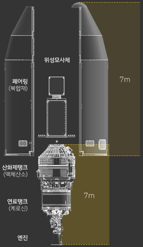 맨 밑부분에 해당하는 1단부 로켓은 75톤 엔진 4기와 액체산소 및 케로신 액체연료 탱크 등으로 구성돼 있다. 그 위에 올려지는 2단부 로켓은 75톤 엔진 1기와 액체산소 및 케로신 탱크 등으로 구성돼 있다. 인공위성이 실릴 맨 윗단인 3단부 로켓은 7톤 엔진 1기와 액체산소 및 케로신 탱크 등으로 구성돼 있다.