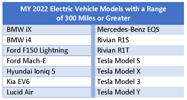 유럽산 전기차는 BMW iX와 i4, 그리고 메르세데스 벤츠 EQS가 300마일 인증을 받았다.