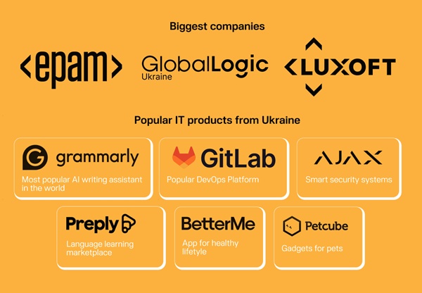 이들은 단순히 해외에 있는 풋내기 코딩 기술자가 아니었다. 우크라이나는 그래멀리(Grammarly), 깃랩(GitLab), 에이잭스 시스템즈(Ajax Systems), 프리플라이(Preply), 베터미(BetterMe)와 같은 글로벌 브랜드를 국내에서 구상, 구축하고 이끌었다. 2021년까지 IT 서비스 부문은 100개국 이상에 연간 60억 달러 이상을 수출하고, 30만 명의 직원을 고용하며, 대기업의 조직 정치가 진보, 생산성, 사기에 미치는 부정적 영향없이 빠르고 확장 가능한 서비스를 제공했다.