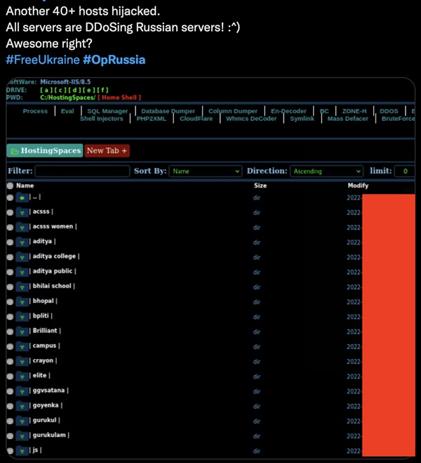 어나니머스는 러시아에서 사업을 계속하고 있는 것으로 확인된 회사의 웹사이트를 차단하고 있다.
