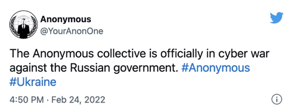 CNBC에 따르면 어나니머스는 러시아 및 벨라루스의 웹 사이트를 차단공격을 했다.