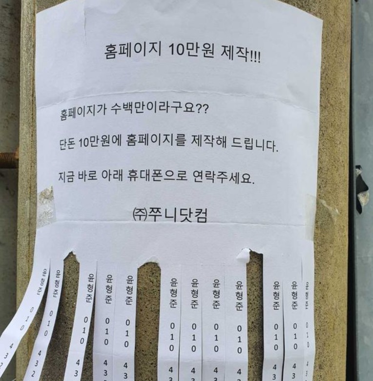 잘 되던 사업이 허망하게 끝나고 절망적인 상황에서 윤 대표가 선택한 다음 창업은 홈페이지를 제작하는 ‘쭈니닷컴’이었다. 디자인과 개발을 학원가서 배우고 처음 한 일은 전단지를 붙이는 것이었다. ‘10만원에 홈페이지를 만들어 드립니다’라는 문구에 전화가 쇄도했다. 낮 동안에는 평균 8곳의 거래처 영업을 다니고 저녁에 사무실로 돌아와 홈페이지 디자인과 코딩을 했다. 목표는 월 매출 300만원이었다.