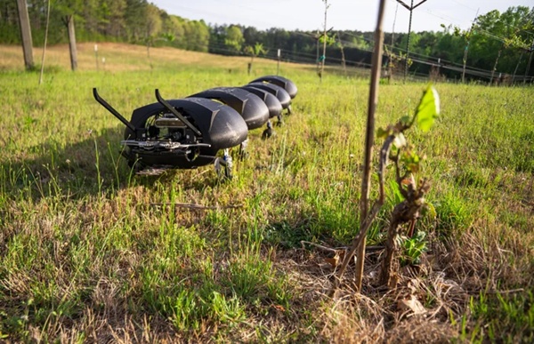 미국 그라운드 컨트롤 로보틱스(GRC)의 거대한 지네 로봇은 까다로운 농장 지형에서 데이터 수집과 잡초 제거용으로 설계됐다. (사진=GRC)