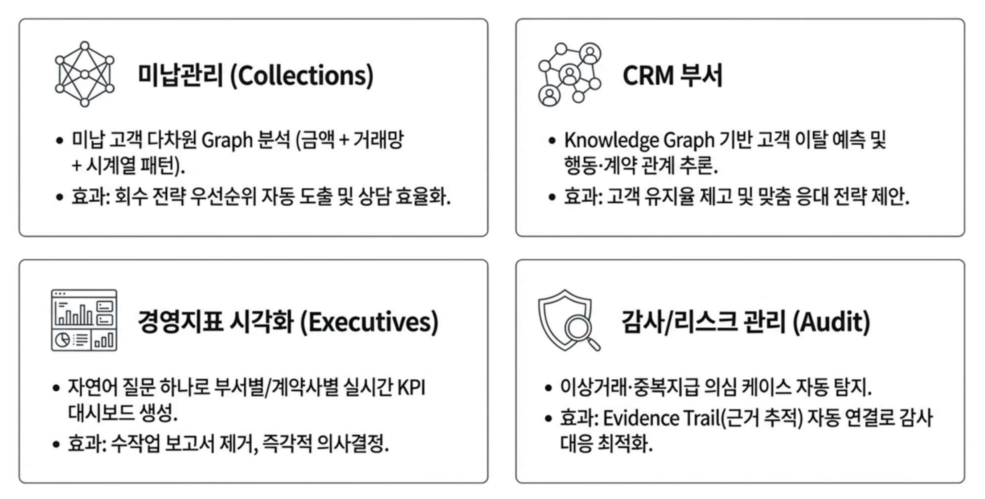 금융 도메인에서 보다 직관적인 사례로 이 대표는 국내 대표 신용정보사와의 PoC(개념검증) 계획을 들었다. 채권 추심 업무에서 모든 채무자에게 같은 방식으로 접근하는 것이 아니라, 상환 가능성이 상대적으로 높은 그룹을 먼저 선별해 우선순위를 제시하는 방식이다. 이는 단순한 예측 모델을 넘어 더 넓은 맥락과 데이터를 반영해 실제 회수율과 업무 효율을 높이려는 접근으로 읽힌다.