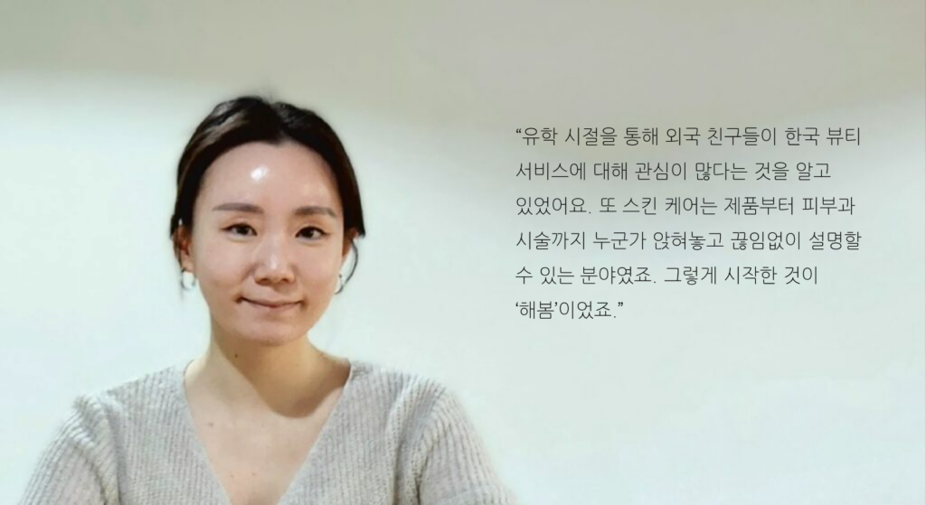 “유학 시절을 통해 외국 친구들이 한국 뷰티 서비스에 관심이 많다는 것을 알고 있었어요. 또 뷰티 분야는 제 개인적인 관심사이기도 했어요. 제 스스로도 피부 고민이 있었기에 스킨 케어 제품부터 피부과 시술까지 누군가 앉혀놓고 끊임없이 설명할 수 있는 분야였죠. 거기에 제가 쿠팡과 우아한형제들에서 접한 IT 관련 경험을 접목했어요. 그렇게 시작한 것이 ‘해봄’이었죠.”