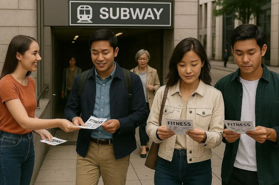 지하철 출구를 오가다 보면 한 번쯤 피트니스, 필라테스, 요가와 같은 회원 모집 광고지를 받아본 경험이 있을 것이다. 그런데 막상 문의를 해보면 회원 가입비부터 시작해 최소 3개월 이상 장기 회원권을 구매해야 할인이 적용된다는 등 생각과는 다른 까다로운 조건이 기다리고 있다. (이미지=빙 이미지 크리에이터로 생성)