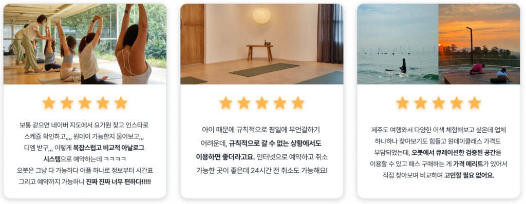 “지금은 공간 파트너들을 보면 시중에 있는 여러 앱들을 각각의 기능에 맞춰 같이 쓰고 있어요. 회원 관리 프로그램, 다른 포털을 통한 예약, 오붓까지 각각 따로 운영하죠. 저희는 SaaS 솔루션을 통해 이 모든 기능을 통합해 효율을 높이도록 돕고 싶습니다.”