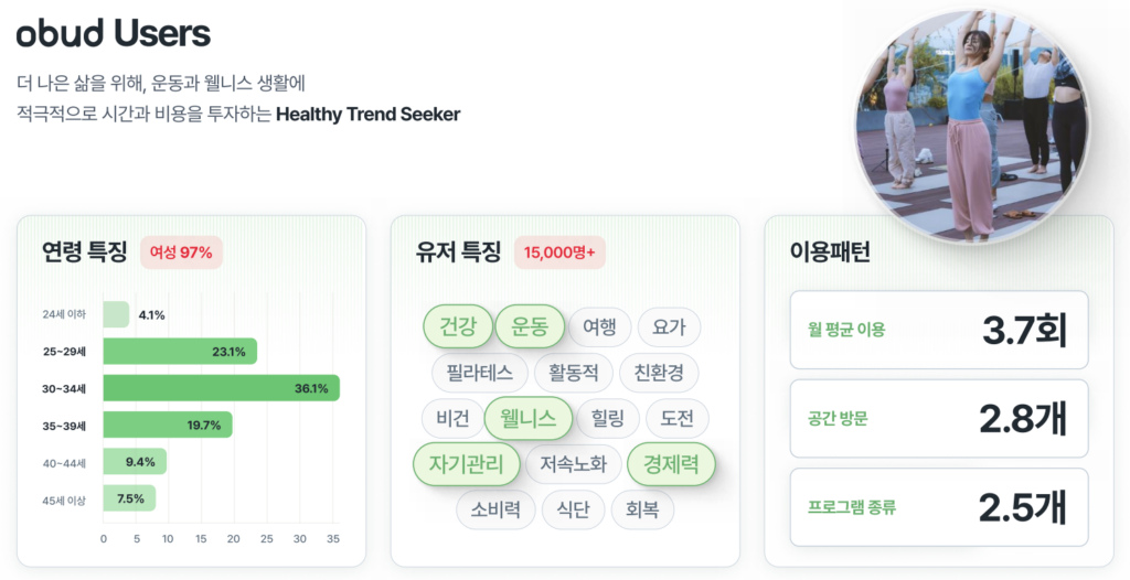 멤버십 기반 피트니스·웰니스 예약 플랫폼을 표방한 ‘오붓(obud)’은 이런 불편함을 새로운 시도와 기술로 바꾸며 시장의 주목을 받고 있다. (이미지=오붓)