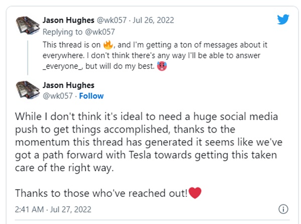 테슬라는 그의 글이 입소문을 탄 후에야 고객에게 “당장 처리하겠다”고 말한 것으로 알려졌다.