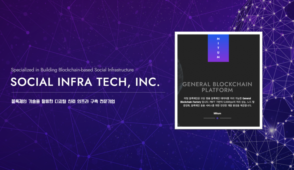 소셜인프라테크의 경쟁력은 남다르다. 제로 베이스에서 자체 개발한 블록체인 메인넷 ‘미텀 플랫폼’을 기반으로 토큰 발행은 물론 디지털 문서의 소유권과 원본성을 증명하는 ‘블록사인’, 블록체인 기반 마인크래프트 게임 ‘블록시티’ 등을 제시하고 있다.