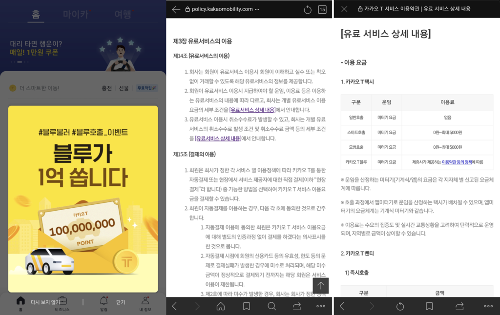 자사가 진행하는 프로모션 등은 별도 팝업창을 띄우면서까지 홍보를 하며 소비자에게 직접으로 영향을 미치는 요금 변경 안은 확인하기 어려운 방식으로 공지했다는 카카오모빌리티의 입장은 쉽게 납득이 되지 않는 상황이다.