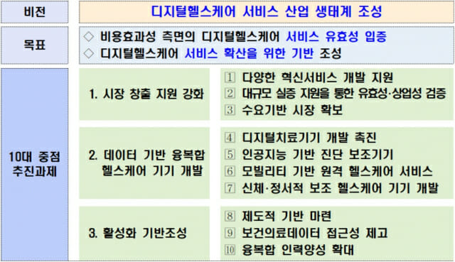 고위험군 종사자 등 사회문제 해결 서비스나 조기성과 달성이 가능한 경우가 그렇다. 이를 위해 신설된 ‘디지털헬스케어 서비스 상용화 촉진 지원 사업’에는 올해 10억 원이 책정됐다.