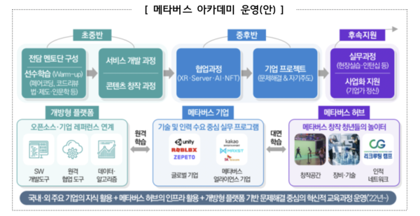 정부는 ‘메타버스 아카데미’를 신설해 올해 실무 전문인력 180명을 양성하고, 재직자 등 700명에게 실무역량 강화교육을 제공한다.