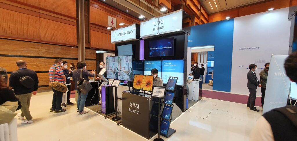 AI 기반 동영상 초해상화 솔루션 ‘딥필드’, 동영상 인지화질 최적화 솔루션 ‘PQ옵티마이저’를 선보이는 블루닷은 이제 2년이 조금 넘은 스타트업으로 동영상 기반 서비스 기업에게 가속된 AI 영상처리 서비스를 제공하고 있다.