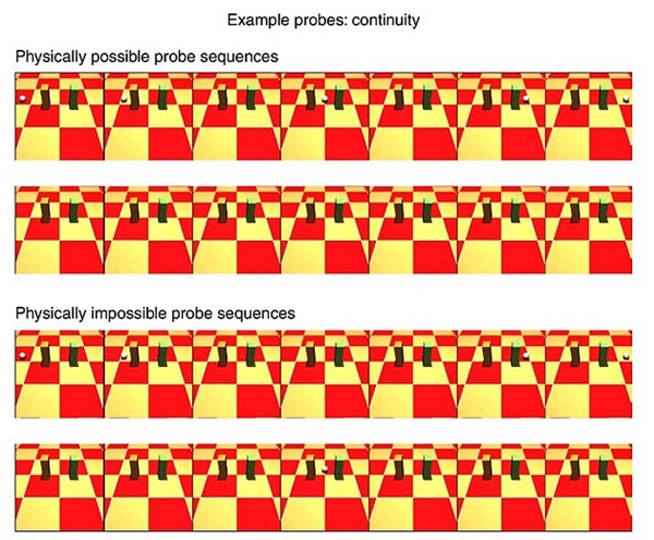 딥마인드 연구원들은 AI 모델이 다양한 물리적 개념, 특히 견고성(두 물체가 서로 통과하지 않음) 및 연속성(물체가 존재 안 및 존재 밖으로 깜박이지 않음)(사진)과 같은 유아들이 이해할 수 있는 물리적 개념 세트를 학습할 수 있는지 물었다. (사진=네이처 휴먼 비헤이비어)