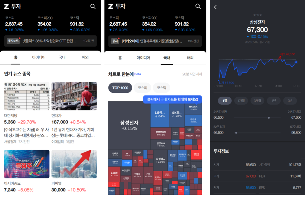 ‘ZUM 투자’ 모바일 버전은 기존의 PC 버전을 고도화한 것으로 △모바일 전용 UI/UX △실시간 시세 적용 △커뮤니티 기능 강화를 통해 사용성을 대폭 높였다.