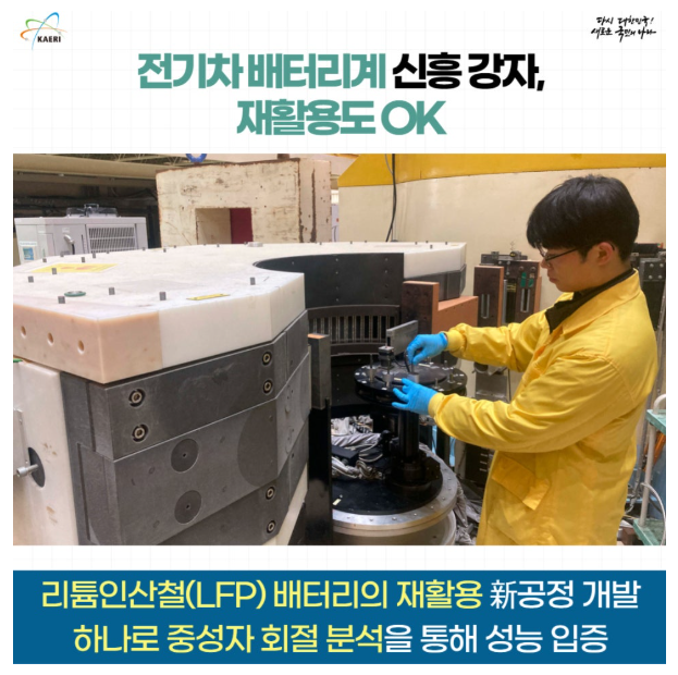 한국 도시광산 산업의 가장 큰 경쟁력은 세계 최고 수준의 기술력이다. 한국원자력연구원은 올해 2월 LFP(리튬인산철) 배터리 재활용 기술을 개발해 리튬 추출률 99.8%, 순도 98.8%를 달성했다. 이는 신품 배터리 제조에 즉시 투입 가능한 수준이다.