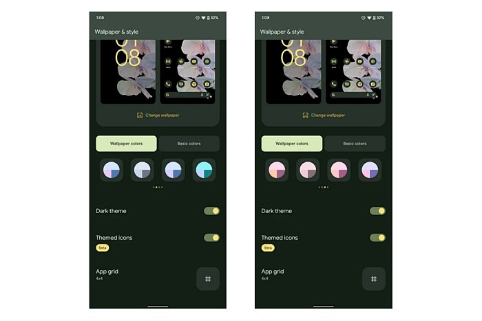 인터페이스 테마를 사용자가 원하는 취향대로 변경할 수 있는 기능도 추가됐다. 다양한 색상 조합을 통해 개성적인 화면 인터페이스를 꾸밀 수 있다. 파스텔 톤의 옵션 색상은 최대 16가지로 조합할 수 있도록 설계됐다. 특히 테마 설정에 따라 앱 아이콘의 색상도 테마 컬러에 맞게 변경되는 점이 돋보인다.