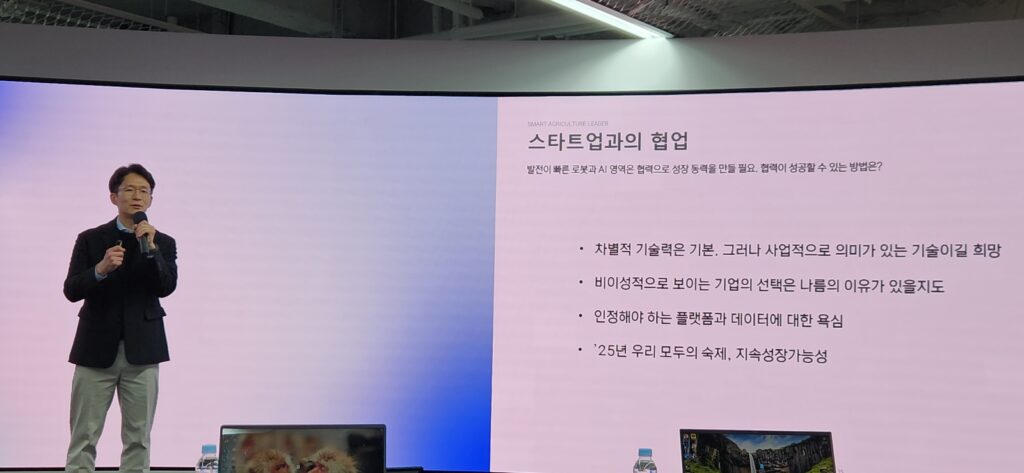 그러면서 “앞으로 꿈꾸는 미래는 고객에게 기계로 다가가는 것을 넘어 플랫폼과 말단의 서비스까지 제공하겠다는 것”이라며 “스마트팜에 들어가는 농업과 AI 기술도 구현해 내겠다는 의지를 담고 있다”고 덧붙였다.