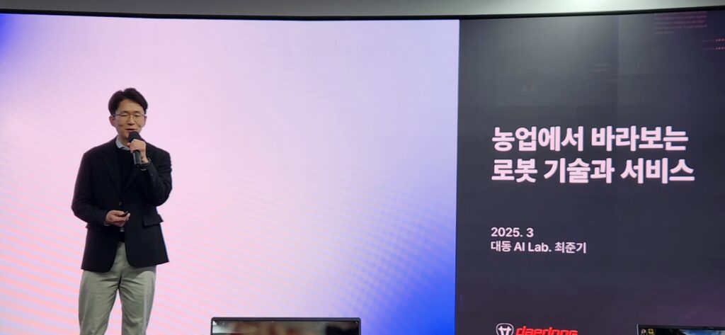 이날 키노트 발표에 나선 최 대표는 이날 대동에아이랩을 필두로 한 대동그룹의 AI 전환 현황을 소개하며 AI 로봇 산업의 트렌드와 농업에 있어 로봇이 적용될 수밖에 없는 이유를 설명했다.