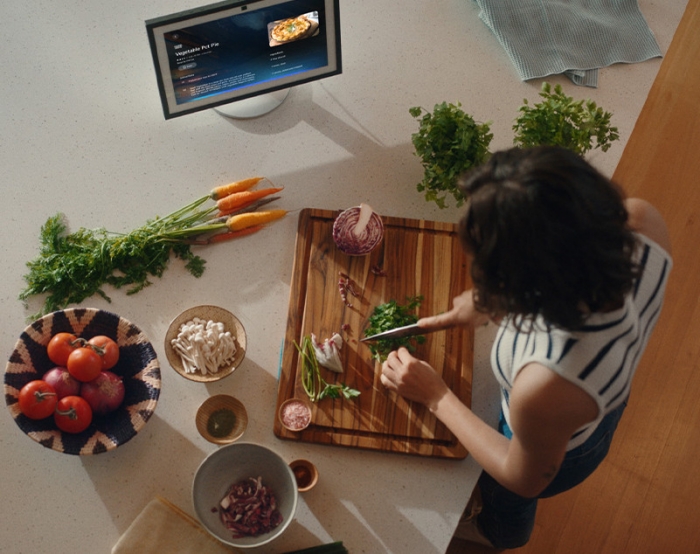 예를들어 사용자가 알렉사에게 반려견을 위한 새 하네스가 필요하다고 말하면, 사용자가 산책을 마치고 집에 돌아왔을 때 이미 에코 쇼(Echo Show) 기기에 준비된 여러 옵션을 볼 수 있다.
