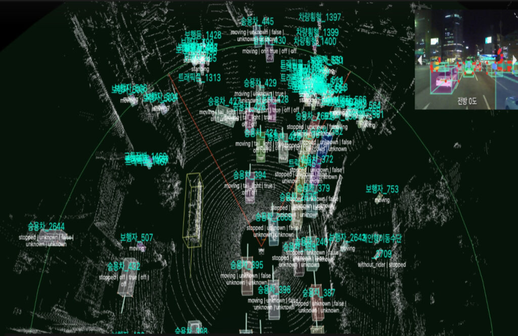 자율주행 차량용 다중센서 융합형 3D 동적객체 검출 추적 학습 데이터, (이미지=카카오모빌리티)