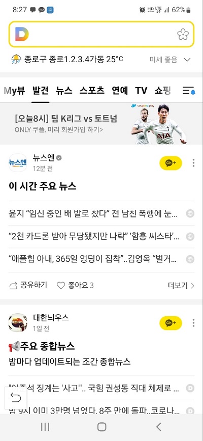 모바일다음의 카카오뷰 발견탭