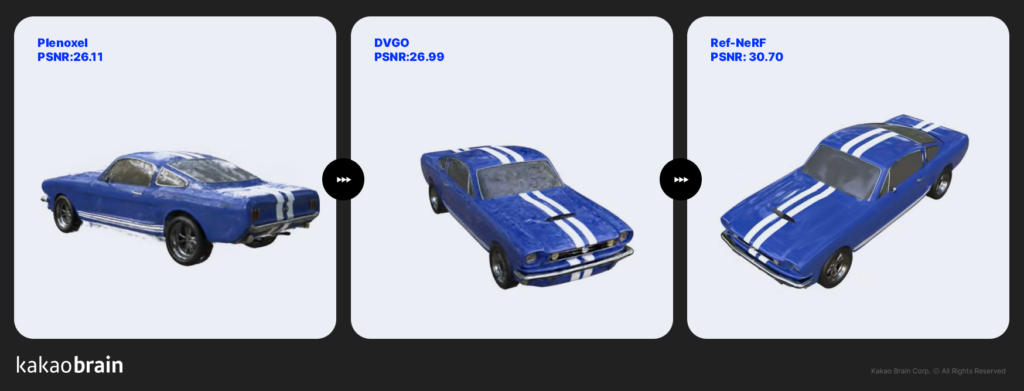 카카오브레인이 공개한 ‘NeRF-Factory 라이브러리’는 현재까지 공개된 총 7개의 ‘NeRF’ 모델들을 하나의 코드로 재구현한 형태로 포스텍 조민수∙박재식 교수 연구팀과 카이스트 권인소 교수 연구팀과의 공동 연구를 통해 개발됐다. 통일된 코드로 구성돼 ‘NeRF’ 모델들의 성능을 객관적으로 비교할 수 있을 뿐 아니라 기술 개발 확장에도 용이하다는 것이 특징이다.