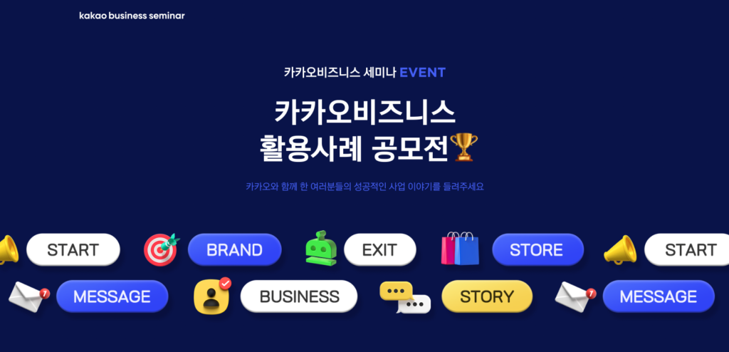 한편 카카오는 오는 26일까지 카카오의 광고, 서비스, 비즈니스 플랫폼을 직접 사업에 활용한 사례와 성공 스토리를 주제로 하는 온라인 공모전을 진행중이다. 최근 1년 간 카카오톡 채널, 카카오모먼트 등을 비즈니스에 활용한 사업자라면 누구나 홈페이지를 통해 참여 가능하며, 카카오비즈니스 세미나 수강 이력이 있는 사업자를 우대한다.
