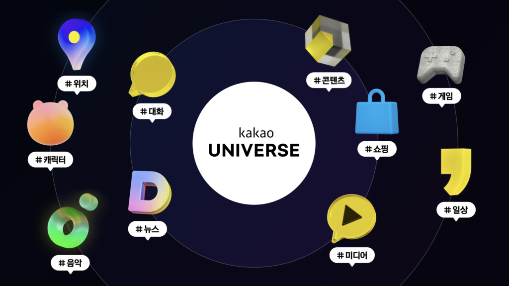 카카오가 ‘B2C2C’ 생태계 기반 메타버스 비전인 ‘카카오 유니버스(Kakao Universe)’로 변화를 위한 구체적인 로드맵을 제시하며 대대적인 변화를 예고했다. 최종 목표는 5000만 한국인을 넘어 50억 세계인을 대상으로 한 우주통신규약으로 거듭나는 것이다.