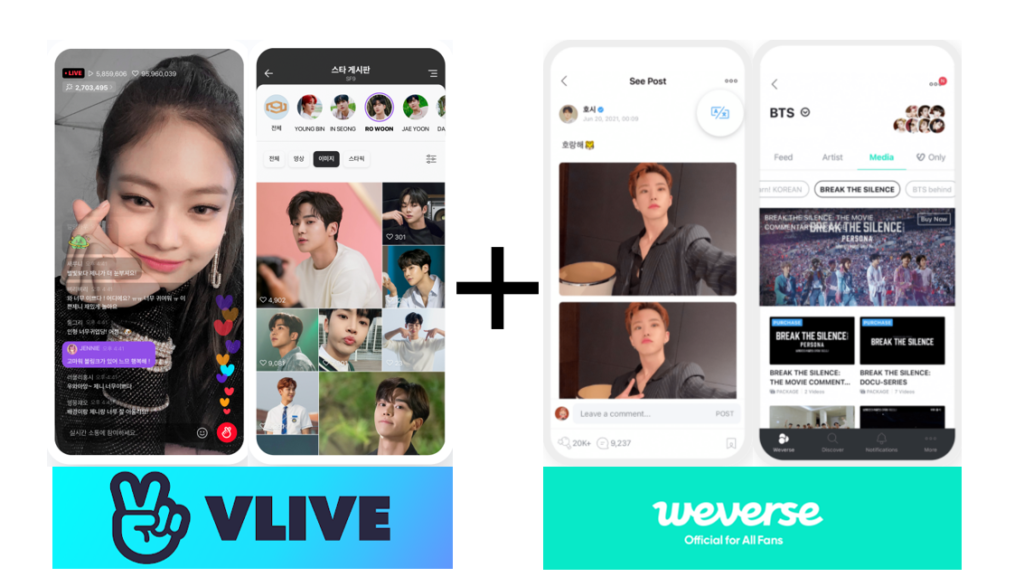브이라이브는 지난해 기준, 다운로드 수 1억건, 월간 이용자수만 3000만명에 달한다. 현재 전 세계 238개 국가·지역에서 이용하는 위버스는 2021년 4분기 평균 월 방문자 수(MAU)가 680만 명이다.