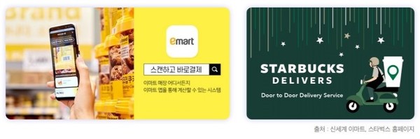 [O2O 서비스 케이스 - 배달의 민족, 이마트, 스타벅스] 배달 서비스 1위 사업자인 ‘배달의 민족’은 대표적인 O2O 플랫폼 사업자다. 배달의 민족 플랫폼에서는 고객이 스마트폰 앱을 통해 먹고 싶은 음식을 선택 및 결제한 뒤 직접 매장에서 픽업한다. 이 서비스는 기존의 배달의 민족이 가지고 있던 편의성에 더해 배달되는 음식을 오랫동안 기다리기 싫거나 배달 요금을 아끼기 위한 고객의 니즈를 반영한 서비스이다. 또한, 배달의 민족은 AI 알고리즘을 통한 리뷰 검토와 음성인식 시스템을 도입했고, AI 업체와의 협력을 통해 앱 서비스를 넓혔다. 이마트는 앱을 설치한 고객에게 위치를 기반으로 하는 맞춤형 마케팅 정보를 제공했다. 이마트를 직접 방문했을 때 고객의 위치를 확인, 온라인으로 정보를 제공하는 것이다. 고객이 매장을 방문했을 때, 현재 위치와 가장 가까운 상품에 대한 할인 행사 정보 및 쿠폰 또는 해당 상품의 조리법을 담은 레시피 등을 전달받음으로써 구매 욕구를 높였다. 또한 이마트 앱 이용 시 고객의 쇼핑 패턴을 분석해 고객 소비 성향에 맞는 제품을 추천하는 핀포인트 마케팅을 시행하여 고객 만족도를 끌어올렸다. 아울러 무거운 물건을 구매한 고객이 해당 상품의 바코드를 스캔하고 결제하면 집으로 배송한다. 이를 통해 고객에게 편리성을 제공했을 뿐만 아니라 차별화된 서비스로 고객의 쇼핑 만족도를 향상시켰다. 스타벅스는 지난해 11월 ‘스타벅스 딜리버스(Delivers)’ 서비스를 선보였다. 스타벅스 딜리버스는 매장 방문이 어려운 고객을 위해 스타벅스 모바일 앱으로 음료와 식품을 주문받아 배달해 주는 서비스이다. 딜리버스 서비스는 고객에게 이동의 제한 없이 어디서든 즐길 수 있는 경험을 제공함으로써, 고객과의 접점을 좁히고 유대관계를 강화했다는 평가를 받고 있다.