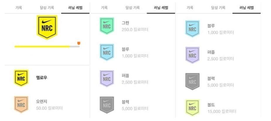 러닝 거리에 따라 앱 화면 컬러가 바뀝니다. 이 컬러가 바로 사용자의 ‘레벨’에 해당하며 최장러닝거리돌파 등 도전과제를 달성하면 ‘기록배지’와 ‘러닝레벨’을 추가로 제공합니다. 친구들의 응원 및 러닝가이드와 전문코치기능을 통해 계획된 운동도 가능합니다.