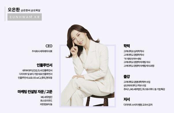 에디터가 지인의 추천을 받아 수 년 전부터 SNS를 통해 지켜보던 인플루언서가 있다. 바로 닉네임 @은환씨로 활동 중인 레어케어 오은환 대표다. 그녀는 다이어트에 성공한 경험을 블로그에 약 100개 가까운 포스팅으로 연재하는 과정에서 팬 커뮤니티가 생겼다. 그리고 그 커뮤니티 구성원들과 함께 다이어트 경험담, 노하우와 함께 공동구매를 중심으로 소통을 이어 갔다.