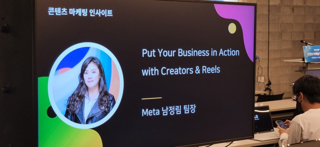 첫 연사로 나선 남정림 팀장은 메타 글로벌 비즈니스 그룹 소속으로 ‘크리에이터 & 릴스와 함께하는 비즈니스 실행(Put Your Business in Action with Creators & Reels)’을 주제로 발표를 시작했다.