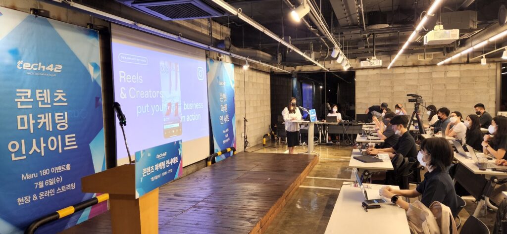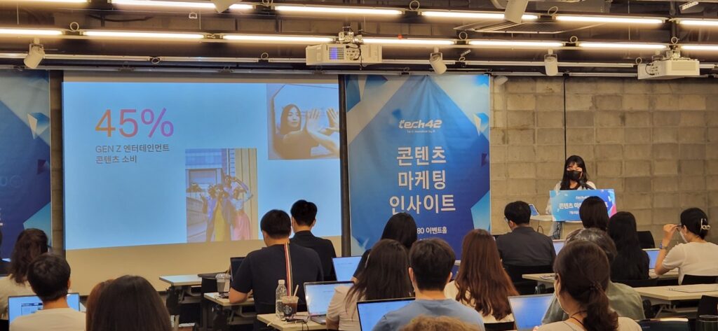 테크42가 주최하는 '콘텐츠 마케팅 인사이트 2022' 컨퍼런스가 6일 서울 역삼동 마루180에서 개최됐다. 지난 2020년부터 마케팅 전문 컨퍼런스 행사로 자리 잡은 콘텐츠 마케팅 인사이트는 이번 행사에서 핵심 소비 세대로 떠오르고 있는 2030 MZ세대를 타깃으로 삼았다.