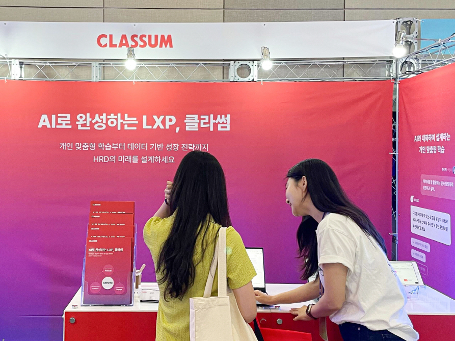 이날 클라썸은 부스에서 이채린 대표의 미니 세션과 함께 ▲사내외 콘텐츠 통합 과정 운영 및 관리 ▲AI 활용한 맞춤형 학습 경로 설정과 업무 효율화 ▲학습 데이터 관리 등 강점을 지닌 LXP를 시연하며 관람객과 활발히 소통했다.