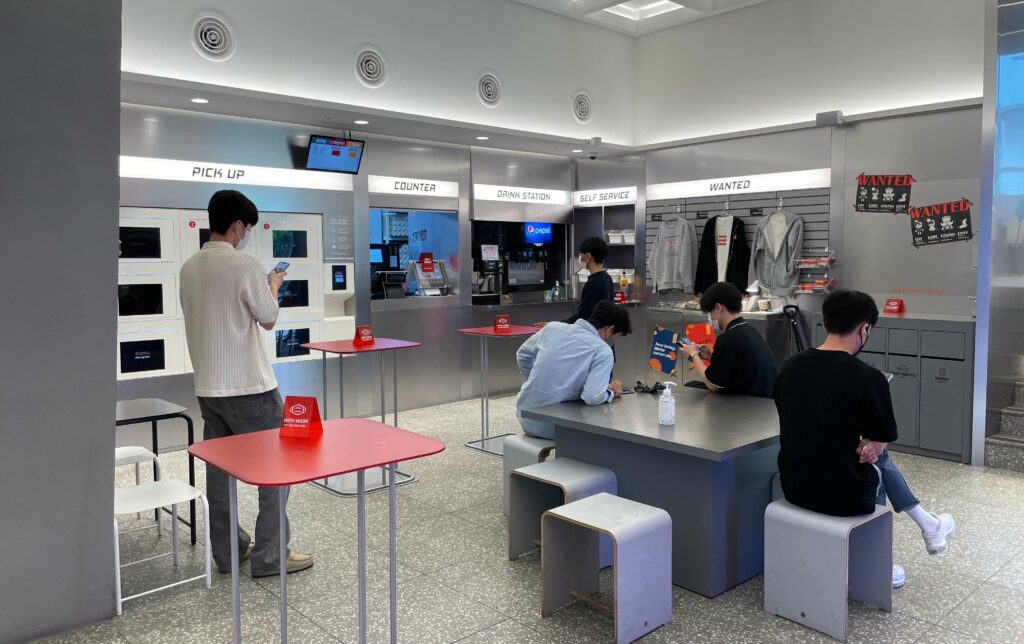 심지어 매장 내에서 직원을 찾기 힘든 곳도 있다. 바로 롯데리아 L7 홍대점이다. 지난해 오픈한 이 매장은 ‘스마트 점포’라는 콘셉트를 내세운 롯데리아의 지역 특화 매장이다. 특화 매장답게 주문부터 픽업까지 모두 비대면이다.